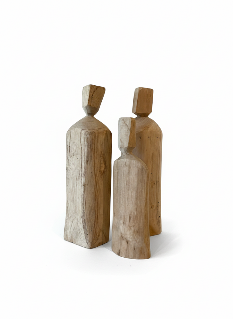 Deze prachtige, handgesneden houten figuren brengen een warme en natuurlijke sfeer in elk interieur. De abstracte vormen van dit drietal symboliseren verbondenheid en zijn een tijdloos decoratiestuk voor in huis.