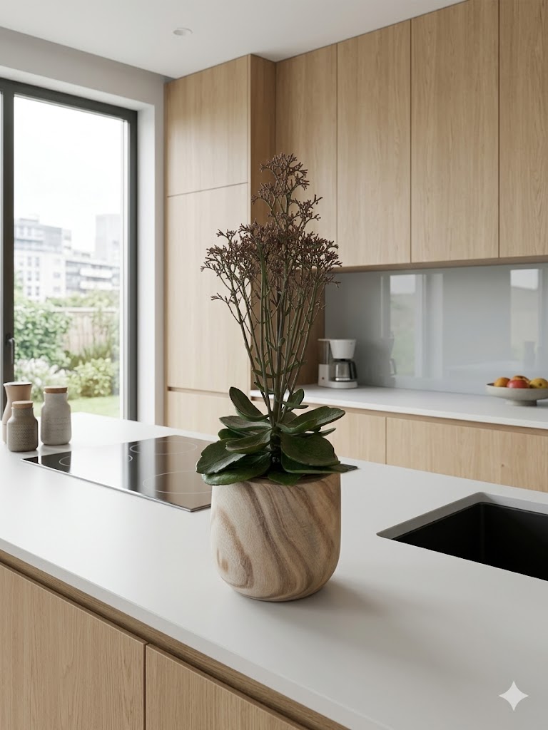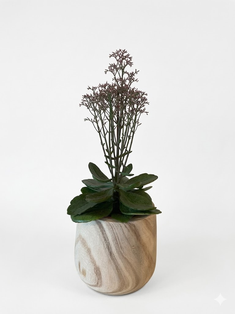 Kalanchoë in Handgemaakte Houten Pot – Naturel Design