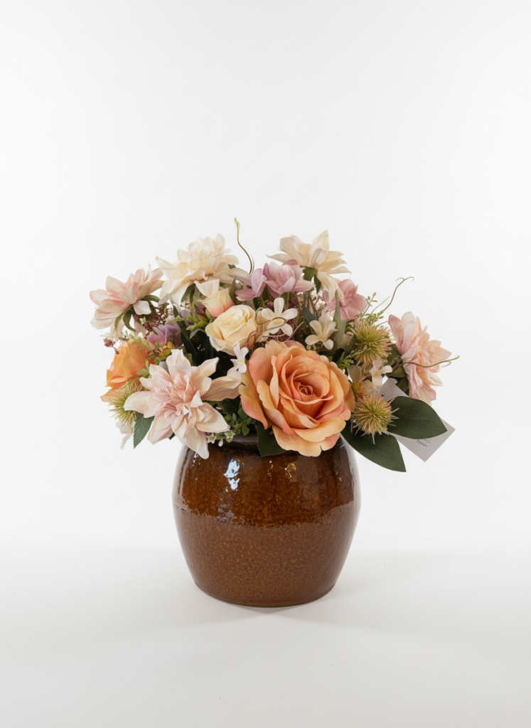 Romantisch Kunstboeket in Rustieke Aardewerken Vaas